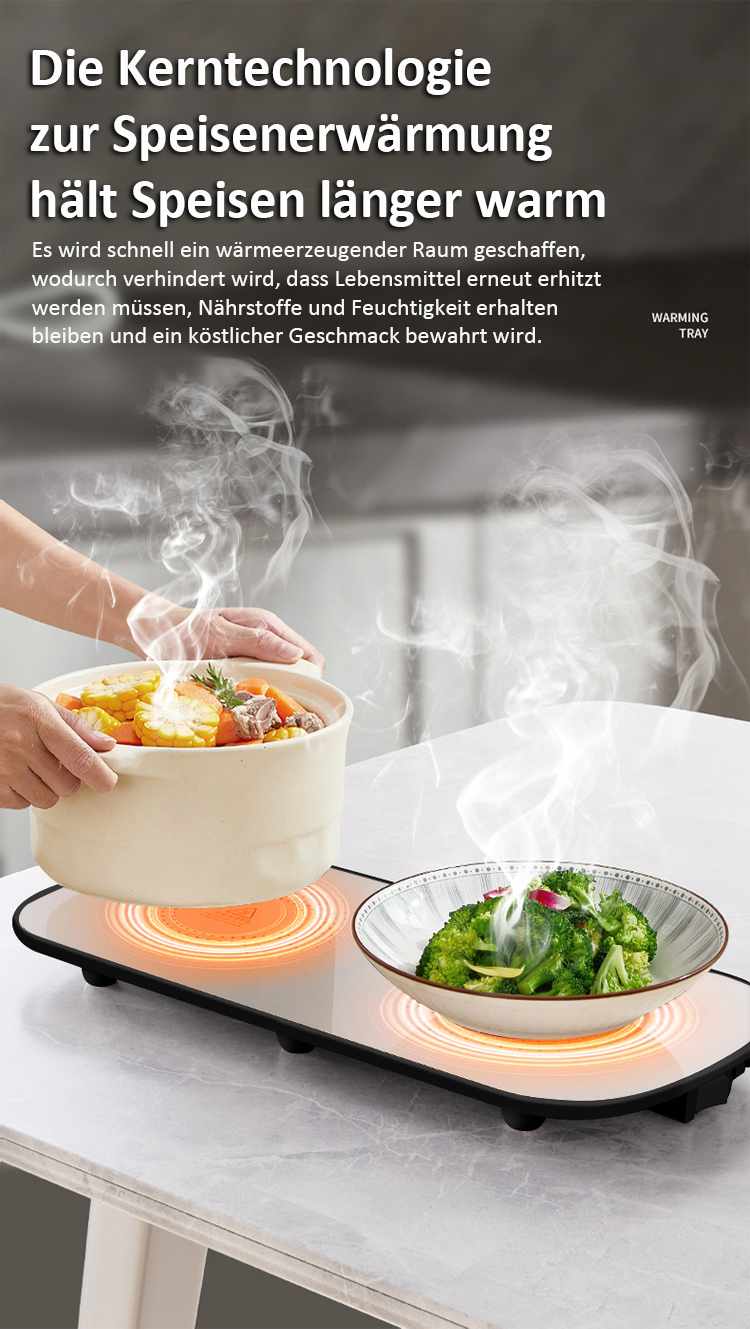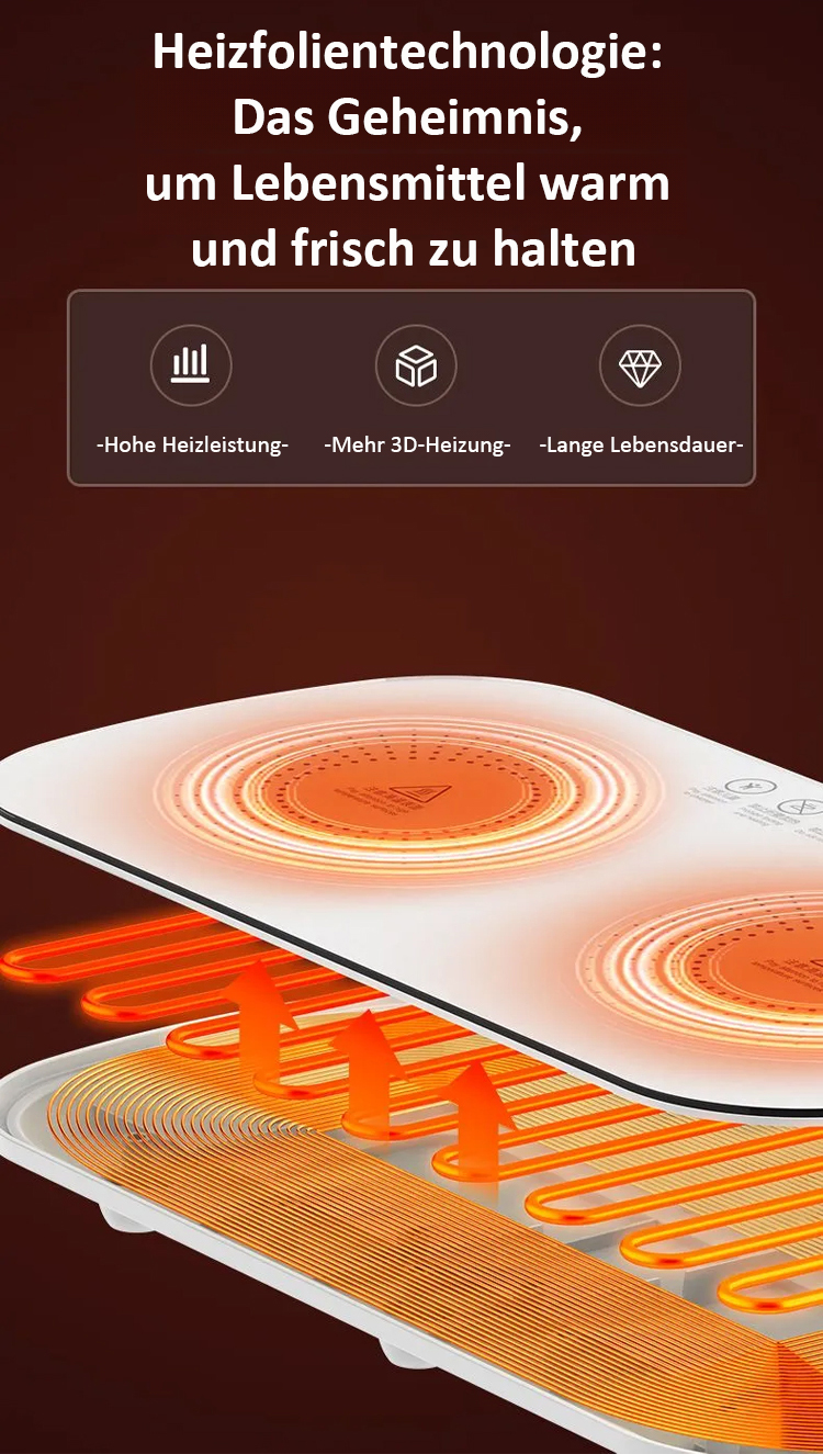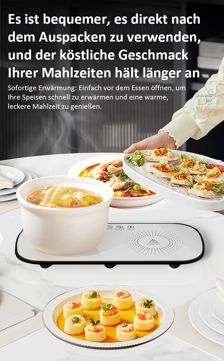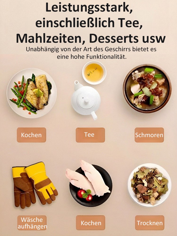 ⚡ Schnelle Temperaturerhöhung🍲 Kein erneutes Erhitzen der Speisen♨️ Warmhalten/Trocknen/Auftauen/Erhitzen🧠 Intelligente konstante Temperatur⏰ Zeiteinstellung und Terminbuchung🏭 Direktverkauf vom Hersteller✅ Qualitätsgarantie