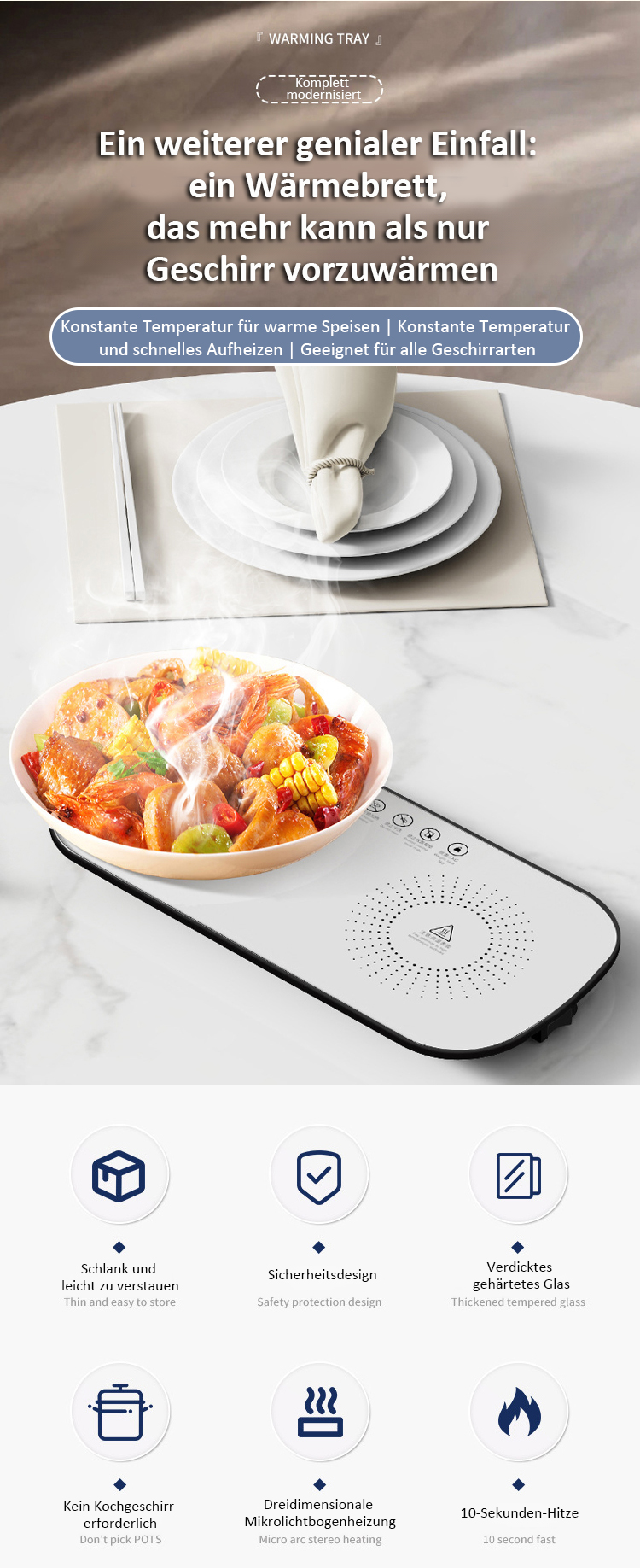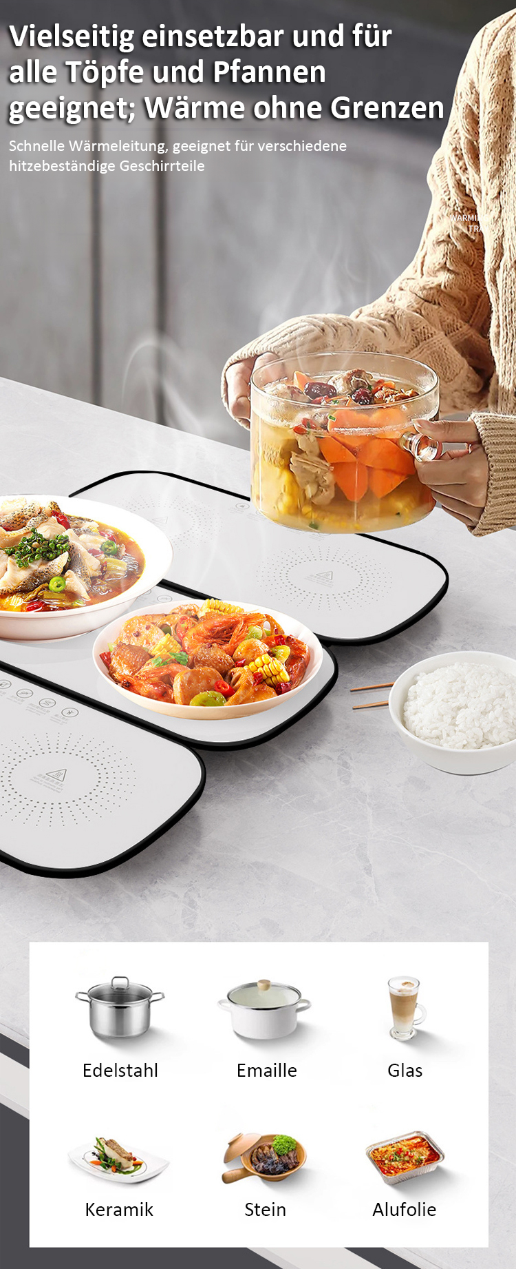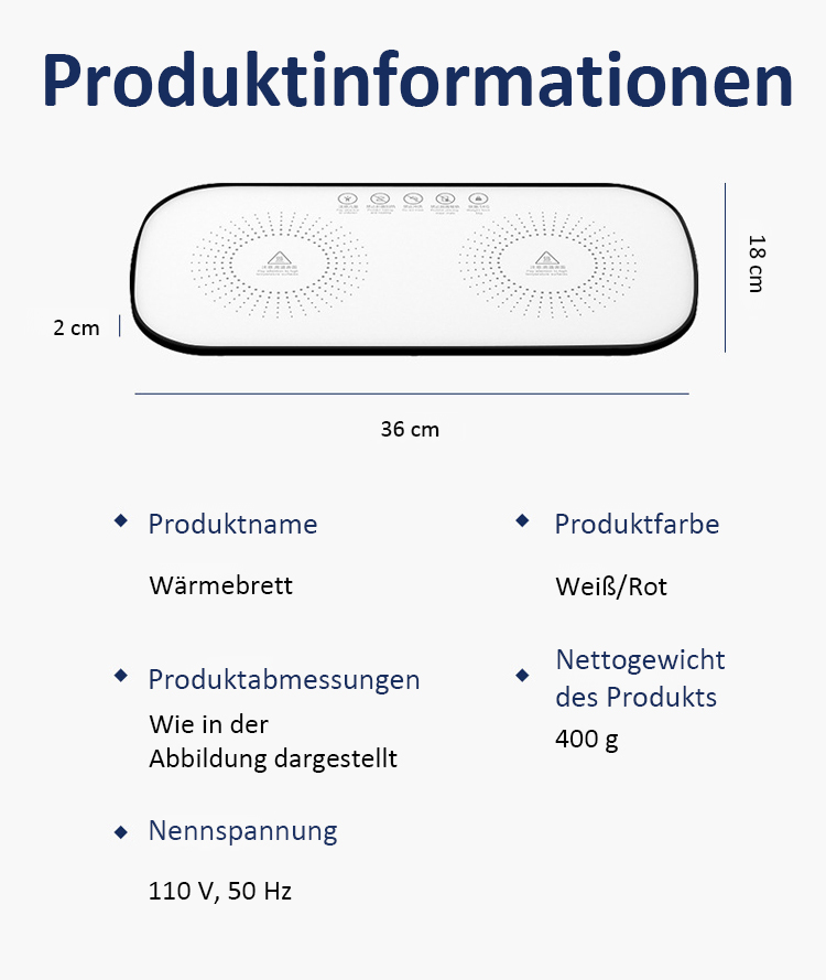 ⚡ Schnelle Temperaturerhöhung🍲 Kein erneutes Erhitzen der Speisen♨️ Warmhalten/Trocknen/Auftauen/Erhitzen🧠 Intelligente konstante Temperatur⏰ Zeiteinstellung und Terminbuchung🏭 Direktverkauf vom Hersteller✅ Qualitätsgarantie