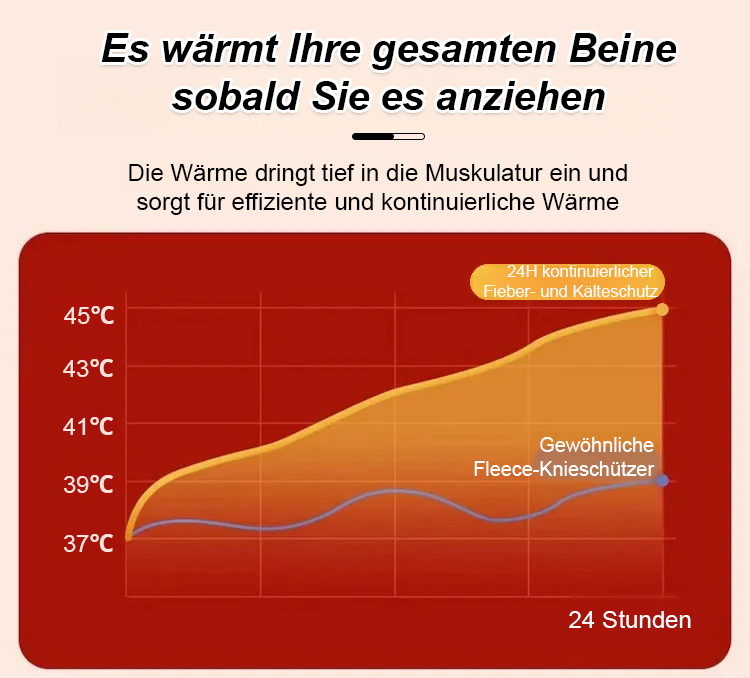 Lange Passform umschliesst Knie + Unterschenkel, volle Wärme ohne Lücken ❄️